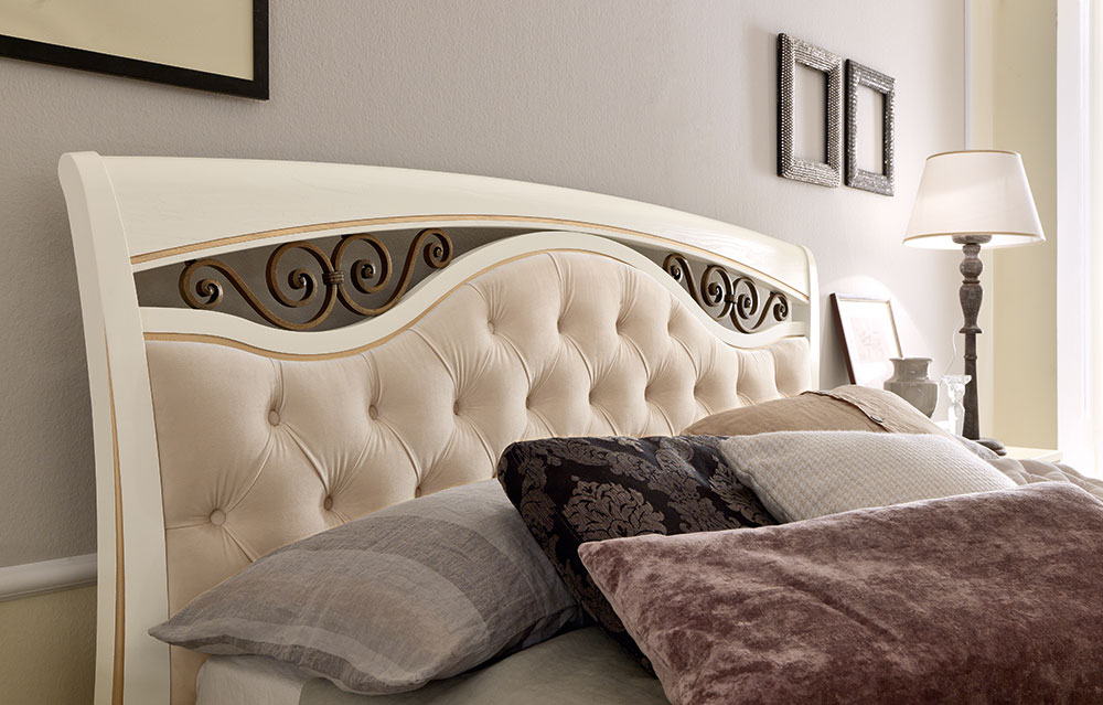 Кровать с изножьем, мягкое изголовье с коваными вставами - спальное место 160 х 200 cm.