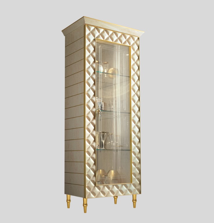 Дисплейные шкафы из коллекции Sipario - это элементы, которые можно использовать самостоятельно или в сочетании с другими, чтобы создать последовательность, которая является элегантной и утонченной. Их также можно комбинировать с другими предметами, чтобы изобретать новые меблированные помещения. Объем с минималистской геометрией и доступный в различных размерах, он обогащается его деликатными декоративными деталями, демонстрирующими лепешки на внешней раме и яркостью его широкой центральной стеклянной поверхности. Его позолоченные ноги поднимают всю структуру с такой легкостью, что она будет адаптироваться к любой архитектурной обстановке.