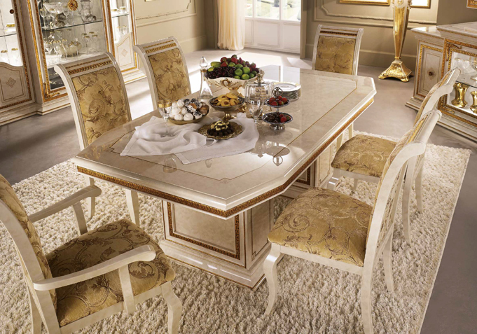 Модель Леонардо включает в себя элементы от спальни и гостиной. Как всегда идеально подогнанные и покрытые шелкографией в ручную, предметы гостиной комнаты можно покупать по отдельности и комбинировать с элементами спальни. Коллекция Леонардо изготовлена из экологичных материалов. Ограненные стекла всегда высокого качества ведь это Swarovsky. Практически везде, где есть золотое или серебреное покрытие используется золотая или серебреная фольга, нанесенная профессиональными итальянскими мастерами. Столы производятся из дерева в комбинации с толстостенной фанерой. Столешница стола изготовлена из МДФ, покрытого шестью слоями лака. Ручная подборка и подгонка элементов позволят мебели служить долго и радовать своего владельца.
