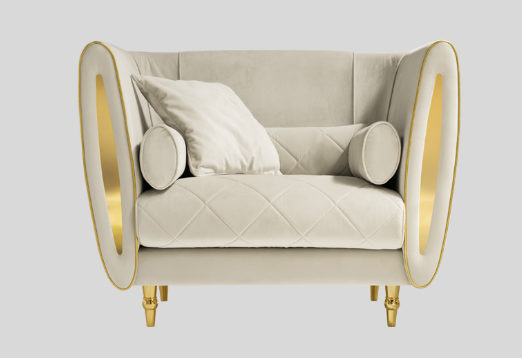 Кресла коллекции Sipario имеют компактный и изысканный силуэт. Сиденья широкие и глубокие и уравновешивают сплошную линию спинки, которая проходит по мягкой кривой, образующей подлокотник. Непрерывность этой функции делает ее компактной и достаточно подходящей для различных контекстов, от традиционных решений до более интенсивных контрастных взаимодействий, подчеркивая современный элемент медного эллипса, характерный для подлокотника. Кресла украшены мягкими подушками, которые, как и функциональные, сами по себе являются декоративными, как в случае с подушкой, окружающей сидения, и ее восхитительным контрастом с золотистыми тонами квадратной подушки.
